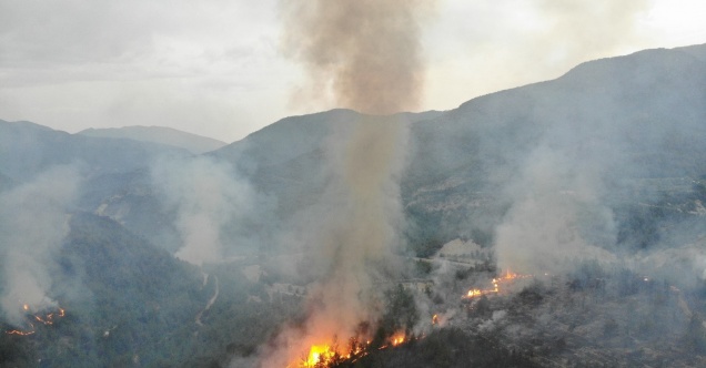 Karabük’teki orman yangını havadan görüntülendi