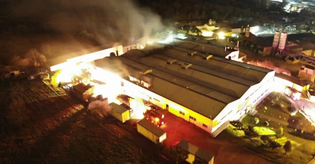 İki katlı fabrikada çıkan yangın ve yangının verdiği zarar drone ile havadan görüntülendi. İtfaiye ekiplerinin çalışmaları devam ediyor.Yangının çıkış nedeni ise araştırılıyor.