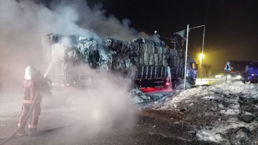 Edinilen bilgilere göre, Malatya- Kayseri karayolu Tavşantepe mevki'inde yaşanan olayda Kayseri istikametine seyir halinde olan 23 ABD 203 plakalı pamuk yüklü tırın, dorse kısmı aniden alev aldı.