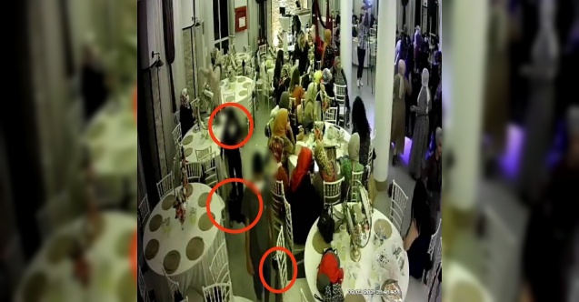 Olay, merkez Yıldırım ilçesi Yeşilyayla Mahallesi’nde bulunan bir düğün salonunda meydana geldi. İş yerinin güvenlik kamerasına yansıyan görüntülerde ise, herkesin sahnede oynadığı sırada salona giren hırsızlar önce bir masanın yanına giderek oynamaya başladı. O sırada sandalyede asılı olan ve üzerinde duran iki çantayı alan hırsızlar tekrardan oynayarak salondan çıktığı görüldü.