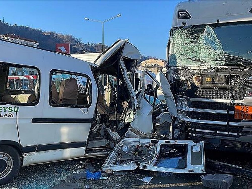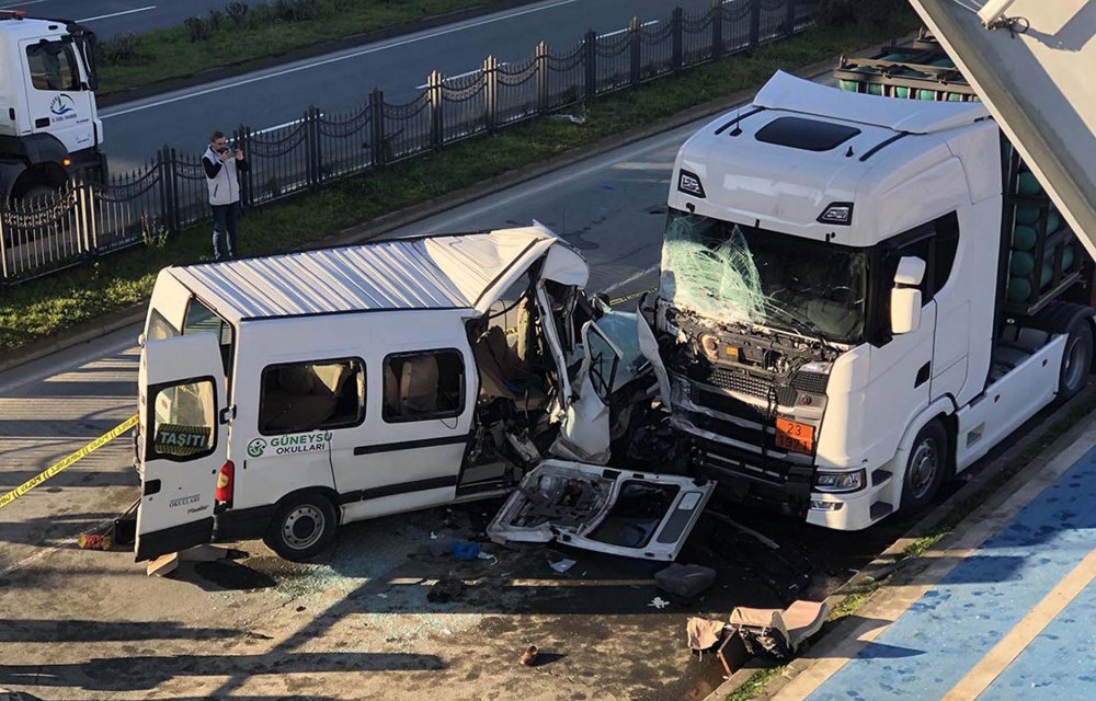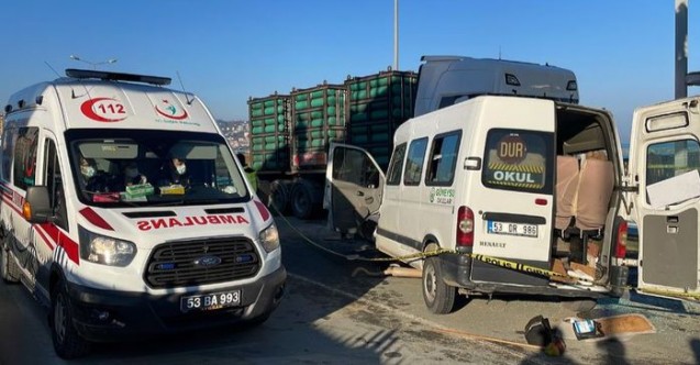 Rize'de park halindeki TIR'a, okul servisi çarptı. Feci kazada 1 kişi hayatını kaybetti,, 2'si ağır 13 kişi yaralandı