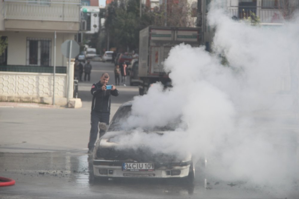 Edinilen bilgiye göre, olay, saat 13.50 sırasında Yeni Mahallesi 2441 Sokak üzerinde meydana geldi. Ramazan Erdoğmuş idaresindeki 34 CIU 101 plakalı otomobil seyir halindeyken biranda motor bölümünden alevler çıkmaya başladı.