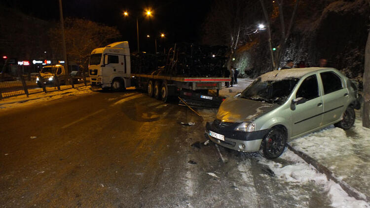 Kaza nedeniyle kapanan yolda araç kuyrukları oluştu. Kaza yerine giren bir TIR, kayarak duran otomobillere çarptı. TIR'ın çarptığı anlar ise kameraya yansıdı. TIR'ın ardından gelen araçların da çarpışmasıyla zincirleme kaza meydana geldi.