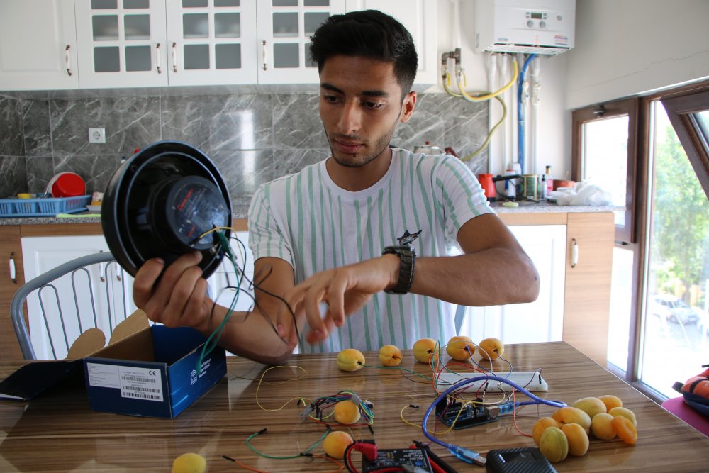 Elazığ`da çocukluğundan beri teknolojiye merakı olan 19 yaşındaki Selim Ucun isimli vatandaş, geliştirdiği yazılım ile kayısının iletkenliğinden faydalanarak tuşları kaysıdan olan elektronik piyano yaptı.