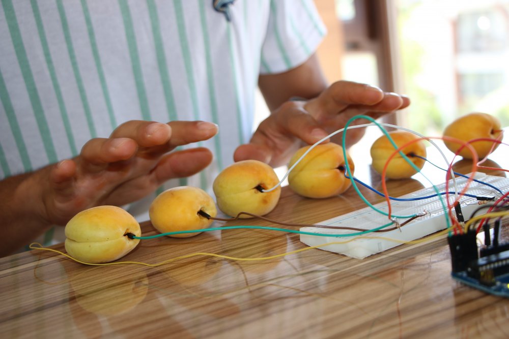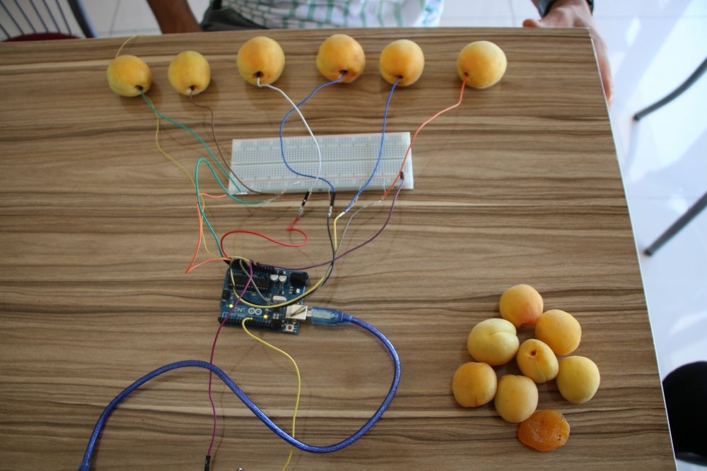 Ucun, bu yazılımda ardunio mikrodenetleyicisi, bread bood, direnç, kablo ve hoparlör kullanarak bir piyano üretti. Sıradanlığın ötesine geçen Ucun, pH'ının asite yakın olduğunu tespit ettiği kayısı ile ilgili projesini tamamlayarak tuşları kayısıdan olan elektronik piyano geliştirdi.