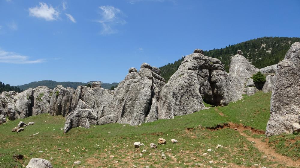 Adana'nın Kozan ilçesi sınırlarından bulunan bin 500 rakımlı Göller Yaylasında bulunan peri bacalarını andıran doğal taş yapılar, doğa ve fotoğraf tutkunlarının ilgisini çekiyor