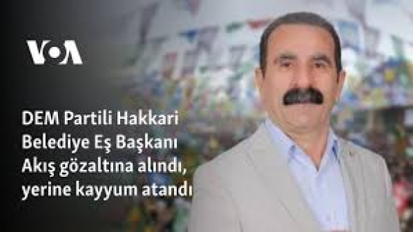 DEM Partili Hakkâri Belediye Eş Başkanı Mehmet Sıddık Akış bu sabah Van'da gözaltına alındı. Polis, belediyede arama yaptı. Eş başkan hakkında ‘Terör örgütünü övmek’ ten soruşturmasının olduğu bildirildi. İç işleri Bakanlığı, gözaltına alınan eş başkanın yerine Hakkari Valisi Ali Çelik, Belediye Başkan vekili olarak atandı.
