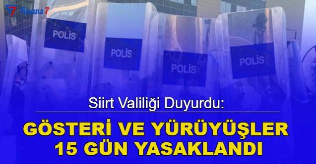 Siirt Valiliğinden konuya ilişkin yapılan yazılı açıklamada, 31 Mart'tan itibaren şehirde 15 gün süreyle basın açıklaması, oturma eylemi, miting, çadır kurma, imza kampanyası, stant açma ve benzeri faaliyetlere yasak getirildiği belirtildi.
