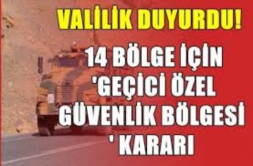 Şırnak’ta 14 bölge giriş çıkışlara kapatılarak 15 günlüğüne “Geçici Özel Güvenlik Bölgesi” ilan edildi.