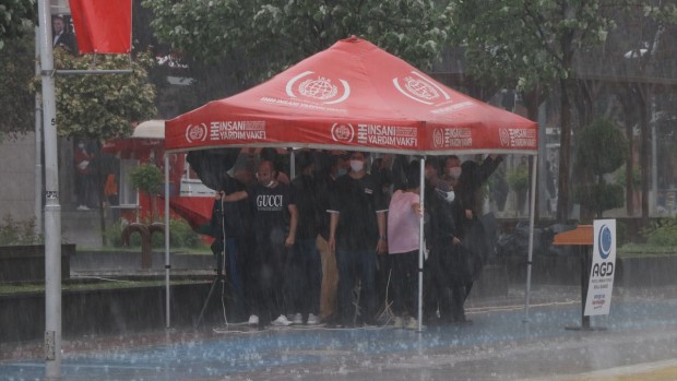 Öte yandan bir baloncunun elindeki balonların zarar görmemesi için fırtınaya karşı verdiği mücadele de kameraya yansıdı.