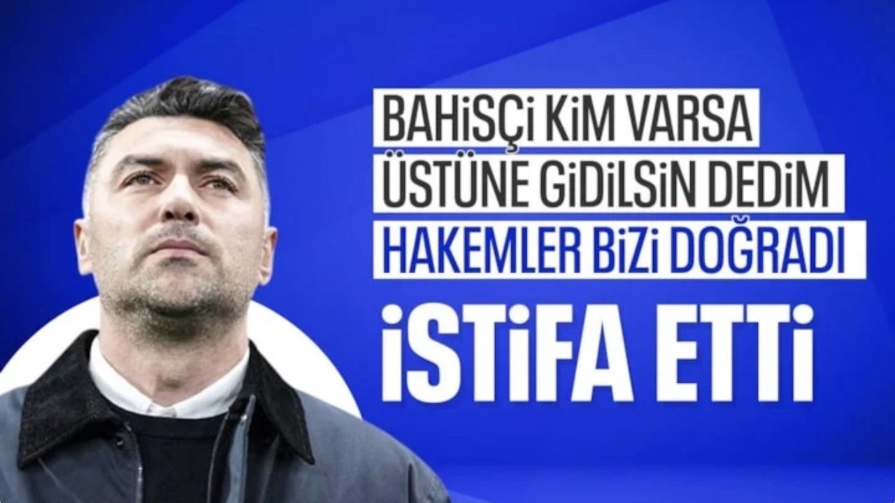 Kocaelispor maçında haksız yere oyundan atıldığını belirten genç teknik adam, “Ondan sonra gerekli yerleri, başkanları aradım. Ortalık karıştı. Üç gün sonra Kocaelispor maçında Burak Pakkan hiçbir şey yokken beni oyundan attı. Atılana kadar hiçbir şey yapmadım ama atıldıktan sonra verdiğim tepki hatalıydı, haksız yere atılmıştım. Sonrasında Fuat Göktaş'ı aradım. Eğer yalan söylüyorsam Allah'ım, dinim, kitabım üzerine yemin ederim. Aradım ve telefonda yanlış konuştum. Çünkü bana yoklama çektiler. Acaba ben miyim diye yoklama çekti Fuat Göktaş. Kendisine telefonda kötü kelimeler kullandım. O benim hatamdı ama ondan sonra Gaziantep FK'ya gereğini yaptılar, her maçta beni doğradılar kardeşim. Federasyon bu şekilde ilerliyor. Bu hakemler kötü. Bu MHK Başkanı kötü. Niye gitmiyor, nedir bu dokunulmazlığı. Galatasaray da şikayetçi, Karagümrük de şikayetçi. Nasıl düzelecek abi? Ahbap çavuş ilişkisiyle gidiyor, düzelmez. Ben bugün istifa ediyorum. Bıktım çünkü. Her gün İbrahim Hacıosmanoğlu'yla, Mecnun Otyakmaz'la konuşuyoruz. Sevgili Mecnun Abi bana, 'O Burak Yılmaz açıklanmadı çünkü altyapıları açıklamadık' dedi. Benim altyapımda en az on kişi ceza aldı, hepinizin altyapısında bahisten ceza alan adamlar var. Burada bir adaletsizlik, terbiyesizlik ve hak yeme var.” ifadelerini kullandı.