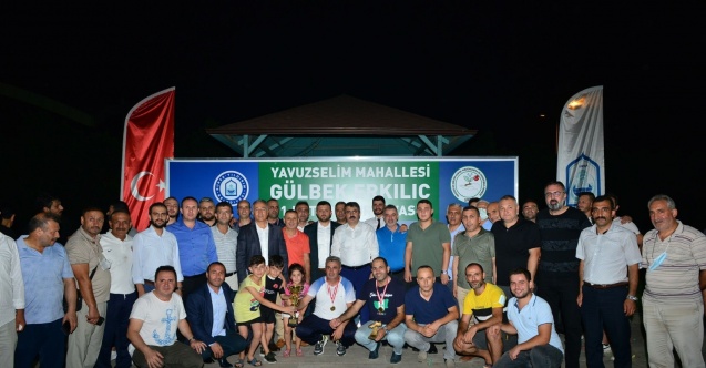 Yunus Emre Spor Kompleksi’nde düzenlenen turnuvanın final gecesine Yıldırım Belediye Başkanı Oktay Yılmaz’ın yanısıra, AK Parti Yıldırım İlçe Başkanı Ali Erbay, Bursa Erzurum Dernekleri Federasyonu Başkanı Ömer Ömeroğlu, Yavuzselim Derneği Başkanı Ali Azkun, AK Parti Yıldırım eski İlçe Başkanı Hüdayi Yazıcı, AK Parti Bursa İl Gençlik Kolları Başkanı Ömer Faruk Temiztürk ve Gülbek Erkılıç’ın ailesi ile çok sayıda sivil toplum kuruluşu katıldı. Yıldırım Belediye Başkanı Oktay Yılmaz, burada yaptığı konuşmada,Yavuzselim’in vefa, birlik, beraberlik ve paylaşmak demek olduğunu belirterek, “Bu turnuva için güzel bir hazırlık yapıldı. 12 takımımız katıldı turnuvamıza. Yaklaşık 6 hafta sürdü, bugün de final maçını izledik. Hakikaten çok çekişmeli bir mücadeleye şahit olduk. Ben turnuvaya katılan, destek veren tüm sporcularımıza teşekkür ediyorum. Bu gelenek inşallah bundan sonra da devam eder. Bizler Yıldırım Belediyesi olarak gençlerimizi geleceğe hazırlama noktasında hem sportif çalışmalarla, hem de kültürel çalışmalarla her zaman onların yanlarındayız. Bursa’nın en büyük spor kompleksi olan Naim Süleymanoğlu Spor Kompleksi Yıldırım Belediyesi’nce çocuklarımıza hizmet vermekte. Yine birçok mahallemizdeki spor komplekslerimizle çocuklarımızı geleceğe hazırlıyoruz. 14 farklı branşta yaz spor okulları düzenledik ve burada 10 binin üzerinde çocuğumuzu bu imkânlardan faydalandırıyoruz. Sadece sporda değil kültürde de Bursa’nın marka değeri olmaya gayret ediyoruz. Bursa’nın en güzel kütüphanesini Yıldırım’ın çocuklarına, gençlerine armağan ettik. Gençlerimiz, geleceğe, üniversiteye ve sonrasına burada hazırlanıyor. Sadece çocuklarımıza ve gençlerimize değil hayatın birçok noktasında insanımıza dokunan çalışmalar sürdürüyoruz. Biz Yıldırım için ‘Değerlerin Şehri Yıldırım’ mottosunu kullanıyoruz. Değerlerin şehri derken sadece tarihi mirasımızı değil aslında insanımızı kastediyoruz. Ben tekrardan turnuvanın düzenlenmesinde emeği geçen herkese teşekkür ediyor, GülbekErkılıç’a rabbimden rahmet niyaz ediyorum. Bir aile için ne mutlu ki; eseri, dostlukları, arkadaşlıkları bugün de devam ediyor” diye konuştu.
