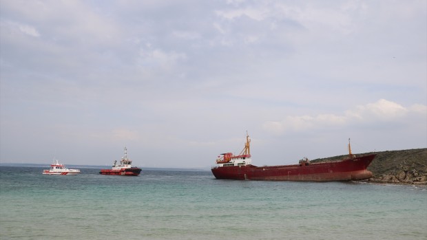 Çanakkale'nin Bozcaada ilçesinde karaya oturan gemi, Kıyı Emniyeti ekiplerince kurtarılarak yüzdürüldü.