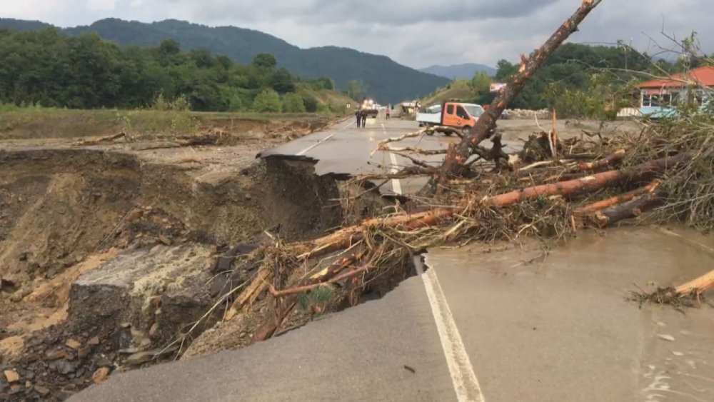 Bartın'da gece saatlerinde başlayan şiddetli yağışın ardından meydana gelen selle birlikte Karabük ve Kumluca karayollarında heyelan meydana geldi. Heyelanın yaşandığı Kumluca karayolundaki o anlar saniye saniye cep telefonuna yansıdı.