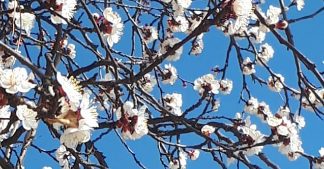 Malatya'da mevsim normallerinin üzerinde seyreden hava sıcaklıkları nedeniyle bazı kayısı ağaçları çiçek açtı. Beyaza bürünen kayısı ağaçları ortaya eşsiz görüntüler çıkarıyor.