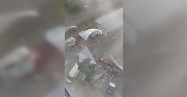 Osmaniye’nin Düziçi ilçesinde aniden gelen fırtına ortalığı toz dumana katarken semt pazarındaki esnaf vatandaşlara zor anlar yaşattı.