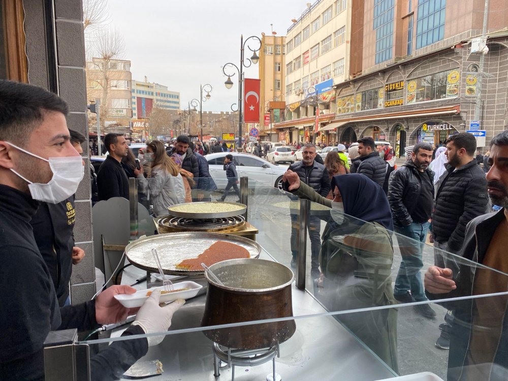 Turizme destek olmak ve gelen turistlerin ağzını tatlandırmak için Diyarbakır’ın kalbi olan Sur ilçesinde açtıkları tarihi pastaneyle turistleri hem tarihe yolculuk yaptıran hem de yöreye has tatlılarla ağızları tatlandıran Hacıbaba Pastaneleri Yönetim Kurulu Başkanı Yılmaz Elaldı, bir ilke daha imza atarak Sur ilçesinde vatandaşlara sundukları Lübnan künefesinde talep patlaması yaşandığını söyledi.