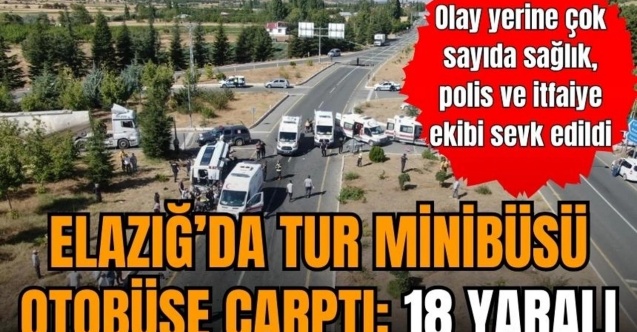 Diyarbakır'dan Malatya'ya giden 21 ADK 281 plakalı tur minibüsü, Elazığ’da otobüse çarptı. Kazada 18 kişi yaralandı.