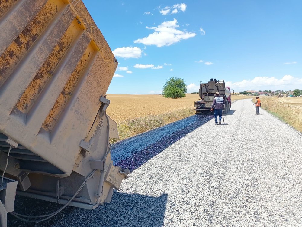 Vatandaşların seyahat güvenliklerini üst seviyeye taşımak için grup mahalle yollarının genişliğini de artıran ekipler, altyapısı tamamlanan yollarda sathi asfalt kaplama çalışması gerçekleştiriyor.