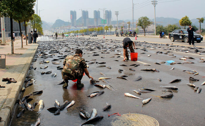 Ülkemiz üst üste depremleri yaşarken, dünyada da acayip şeyler oluyor. Bunlardan biri gökten yağmur gibi balık yağması oldu.