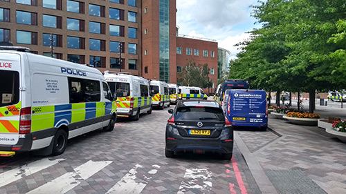 Protestolar sırasında bir grup göstericinin binaya girmeye çalışması ile polisle göstericiler arasında arbede yaşandı. Polis bina girişine adeta etten duvar örerek, göstericilerin binaya girmesini engelledi. Metropolitan Polisi tarafından yapılan açıklamada, bir grup göstericinin yerel saatle 13.00 itibariyle toplanarak bina önüne geldiğini belirtti. Polis, olayda kimsenin gözaltına alınmadığını ancak görevlilerin durumu izlemeye devam edeceklerini belirtti.