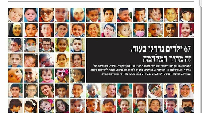 İsrail’in en eski günlük gazetesi Haaretz'ten çok konuşulacak bir adım geldi. , Gazete İsrail saldırılarında Gazze’de ölen 67 çocuğun fotoğraflarını manşetine taşıdı.