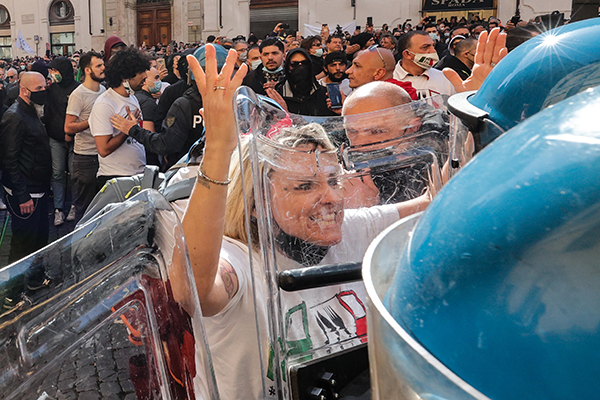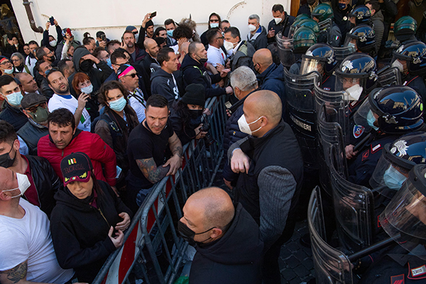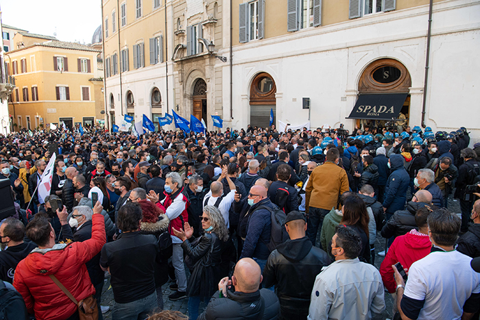 Öte yandan 2020 Mart ayında İtalya'da ilk ulusal kısıtlama geniş çapta kabul edilmiş olsa da Ekim ayında duyurulan yeni kısıtlamalar, İtalya'nın bazı kentlerinde büyük tepki çekmişti. İtalya'da Coivd-19 vaka sayılarının artmasıyla azalan bu protestolar ise, kısıtlamaların kaldırılmasının bahar aylarına kadar uzatılma kararı ile tekrardan patlak verdi.
