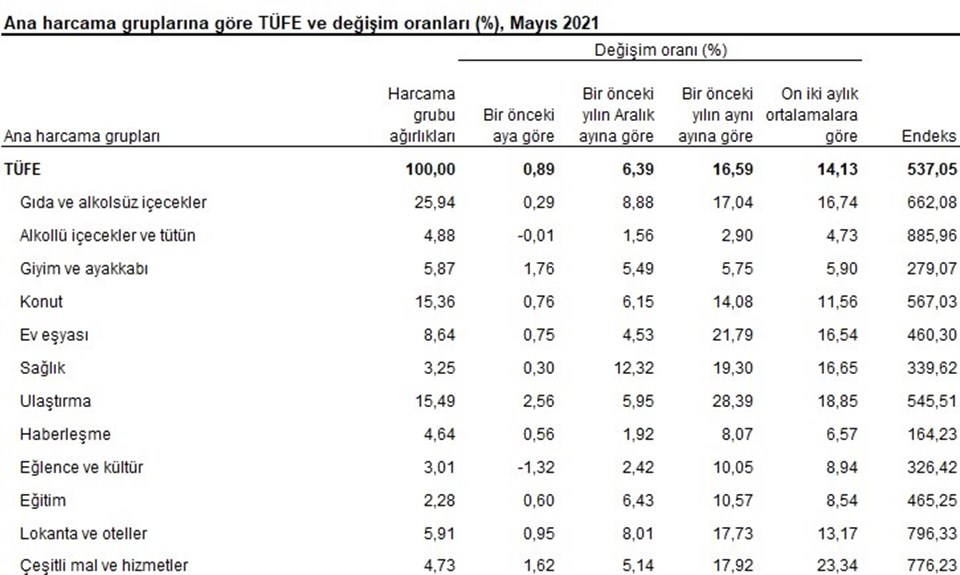Enflasyon, pandemi tedbirleri kapsamında tam kapanma uygulanan mayıs ayında hız kesti. Tüketici Fiyat Endeksi, mayısta piyasa beklentilerinin altında kalarak yüzde 0,89 oranında arttı. Mayısta en yüksek fiyat artışı yüzde 41,57 ile patateste yaşanırken en çok ucuzlayan ürün yüzde 50,94 ile sivri biber oldu.