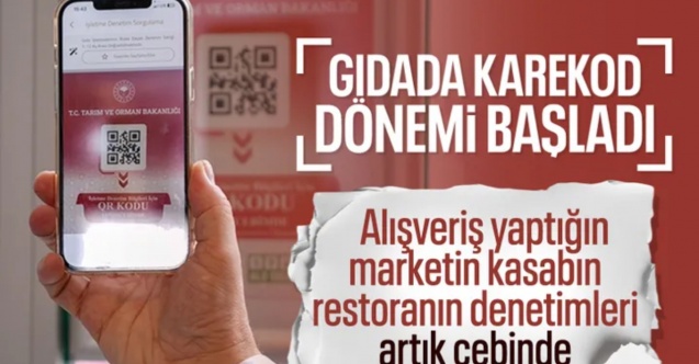 Tüketicilerin gıda işletmelerinin denetim durumunu takip etmesi amacıyla başlatılan "karekod uygulaması", bugünden itibaren satış ve toplu tüketim işletmelerinde zorunlu olarak kullanılacak.