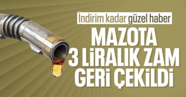Küresel piyasalarda Orta Doğu kaynaklı gerilimin azalmasıyla birlikte motorine yapılması planlanan 2,74 TL’lik zam geri çekilirken, bu gece yarısından itibaren geçerli olmak üzere 20 kuruşluk bir artış kararı alındı