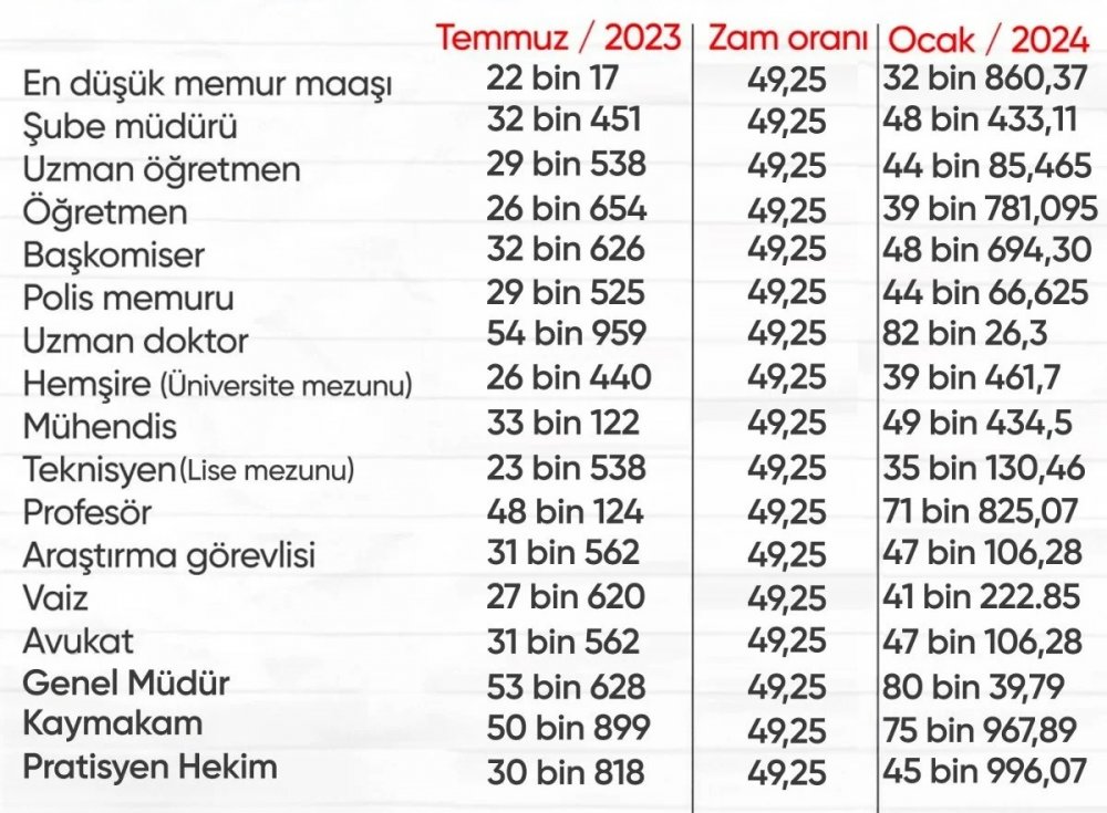 Temmuz 2023 | Zam oranı (yüzde 50) | Ocak 2024