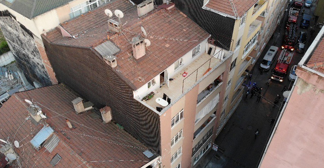 Öte yandan çökme tehlikesi nedeniyle boşaltılan apartman havadan görüntülendi.