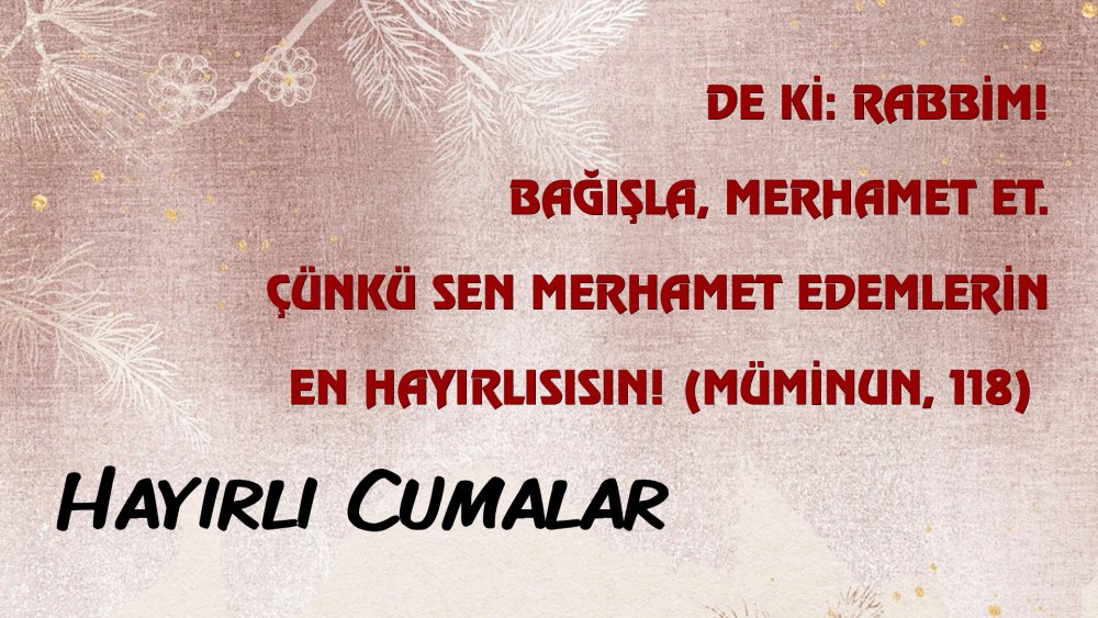 Kalbimiz iman ile gönlümüz İslam ile dilimiz Kur’an ile kulağımız ezan ile gözümüz nur ile dolsun… Evimiz huzurlu ve neşeli olsun. Hayırlı Cumalar…