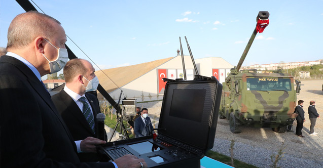 Dünyada askeri araç teknolojileri hızla değiştiğini, yeni nesil otonom ve elektrikli hibrit askeri araçların harp meydanlarında yer almaya başladığını ifade eden Erdoğan, “Türkiye’nin askeri araçlarda, özellikle de motor konusundaki dışa bağımlılığını bitirecek yeni teknolojilerin ilk örneğini bugün görme imkanına kavuştuk. Bizim mühendislerimiz M-133 askeri zırhlı personel taşıyıcı araçları elektrikli motor ile çalışan hibrit hale getirdiler. Uzaktan kumanda ile insansız çalışabilen ve 27 tane çok zorlu askeri testi başarı ile geçen, kısa E-ZMA denen bu elektrikli zırhlı muharebe aracımız artık TSK’nın emrindedir. Yol yapma menzili 700 saati, savaşma süresi 10 saati bulan, motor konusunda dışa bağımlılığı bitiren E-ZMA projesinde görev alan tüm arkadaşlarımızı tebrik ediyorum. Bugün burada şahit olduğumuz bir diğer yenilik de Fatih Sultan Mehmed Han’ın bizzat tasarladığı, çağ açıp çağ kapatan Şahi toplarının devamı niteliğindeki Yavuz ve Fırtına silah sistemleridir. Fatih’ten aldıkları ilhamla dünyada ilk defa seri atış yapabilen, Sahra topunu 1868 yılında icat eden Ahmet Süreyya Emin’in yolundan giden mühendislerimiz, kendi sınıfının en iyisi olan Boran obüsünü yaptılar. Boran obüsü, 105 milimetre çapı ve helikopterle havadan taşımaya uygun bin 75 kilogram ağırlığı, bir dakikada atışa hazır hale getirilebilmesi, dakikada 6 atış yapabilmesi özellikleriyle bilhassa komando birliklerimize büyük katkı sağlayacaktır. Bugün burada ayrıca, yeni geliştirilen platform makinalı tüfeğini inceleme fırsatı bulduk. Bu yeni makinalı tüfeğimize PMT-76 57-A ismi verilmiştir. Makinalı tüfeğin ismindeki 57-A ibaresinin özel bir anlamı vardır. Bu ifade tüfeğimizin isminde, Çanakkale Savaşı’nda mensuplarının neredeyse tamamı mitralyöz ateşi ile şehit düşen 57. Alay’ın hatırasını yatmak üzere yer almaktadır. Çanakkale Savaşı’nın 106. yıl dönümünde bir kez daha Çanakkale şehitlerimizi ve bütün şehitlerimizi rahmetle, şükranla, hürmetle yad ediyoruz. 2017 yılında şehit olan üsteğmenimiz Ozan Olgu Köreke tarafından tasarlanan Bozok el bombası. MKE, bu projeyi aldı, geliştirdi ve üretmeye başladı. Hayata geçirilen bu projeler imalat-ı harbiye ruhunun günümüzdeki yansımalarıdır. Kurtuluş Savaşı yıllarında defalarca doldurulup tekrar cepheye gönderilen Gazi Kovan’dan çok şükür bugün termobarik mühimmat üretebilir hale geldik” açıklamasında bulundu.