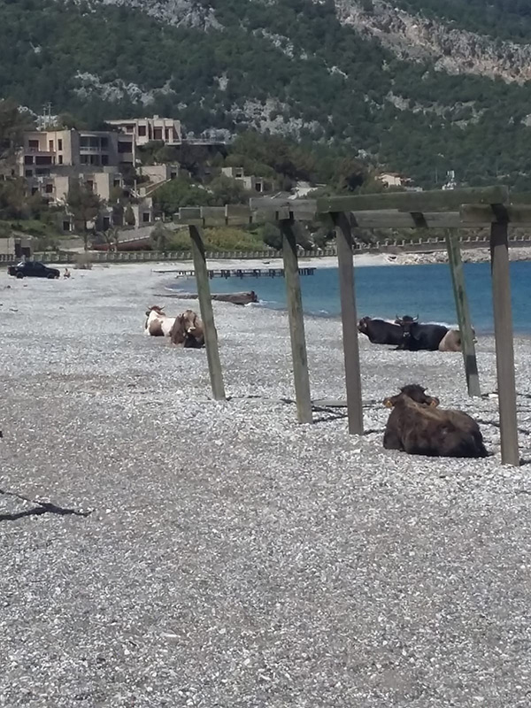 Muğla'nın Marmaris ilçesinde sahilde güneşlenen inekleri görenler, bir daha baktı. İneklerin sahilde güneşlenmesi vatandaşlar tarafından cep telefonu ile görüntülendi.