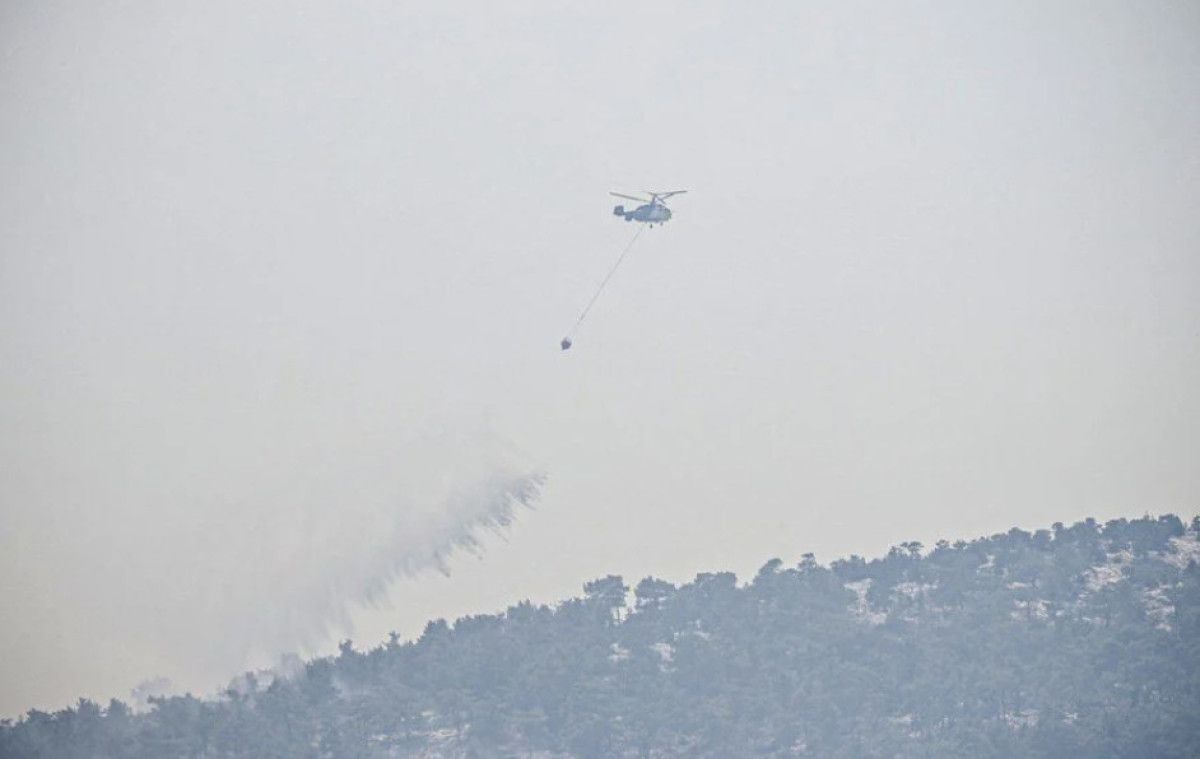 Bölgeye ulaşan yangın söndürme helikopteri alevlere müdahaleye başladı. Karadan da ekiplerin alevleri kontrol altına almak için çalışmalarının sürdüğü kaydedildi.