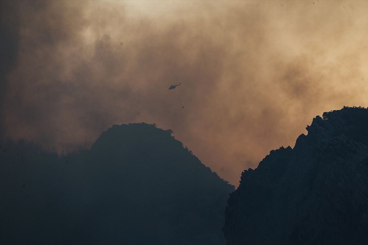 Söndürme uçağı ve helikopterlerin sabahın ilk ışıklarıyla başlayan havadan müdahalesi sürüyor.