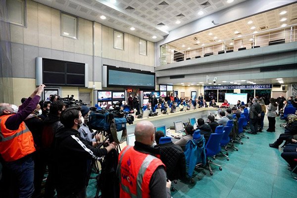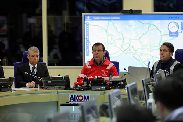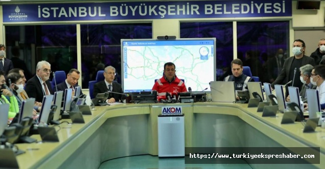 İBB’nin sorumlu olduğu alanlarda 12 saat içerisinde akışkanlığı sağladıklarını söyleyen İmamoğlu, “İBB olarak sorumlu olduğumuz alanlarda 12 saat içerisinde karın başladığı andan, büyük bir ekiple akışkanlığı sağladığımızı ve insanlarımızın o yolları kullanma imkanlarını sağladığımızı duyurmak isterim. Bu gerçekten başarılı bir zaman dilimidir. İnsanlarımızın araçlarını bırakması halinde bile evlerine erişebilmesi noktasında özellikle kar yağışı Kuzey’den ve Avrupa yakasında etkili oldu. Çatalca - Arnavutköy - Sarıyer hattından başlayıp, Başakşehir - Esenyurt - Beylikdüzü hattında D-100 karayolunda etkili olabileceğini biliyorduk. Burada kesintisiz metrobüs hatlarını çalıştırdık. Hiç kesintiye uğramadı. Metrobüs güzergahında 33 iş makinamız sürekli çalıştı. O bölgede bulunan ilçe belediyelerini bizzat aradım. O bölgede görev yapmış yaşamış birisiyiz. 2004'te 17 saat araçta mahsur kalmış birisiyim. Araçların temini ile özellikle metrobüs duraklardan açık olan yollardan evlerine nakillerinin sağlanması hususunda ilçe belediye başkanlarından destek istedim” dedi.