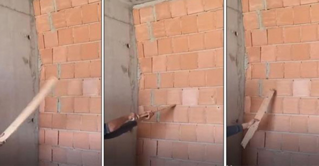 Sosyal medyada bir inşaat işçisi tarafından paylaşılan görüntüler 'İnsan hayatı bu kadar ucuz mu?' dedirtti. Görüntülerde henüz inşaat halinde olan binanın tuğla duvarını elindeki sopa ile iten işçi, tuğla duvarın nasıl sallandığını gözler önüne serdi.
