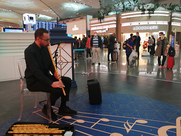 Seyahat etmek için terminal binasına giriş yapan yolcuları ilk olarak, gitarı ve mızıkasıyla dünyanın farklı dillerinde söylediği şarkılarla hem çalıp hem söyleyen Noyan Kalçın karşılıyor. İç ve dış hat terminallerinde de de farklı etkinlikler gerçekleştiriliyor. Hattat Hasan Çelebi’nin talebelerinden Hat Sanatçısı Hamit Soyyiğit ise, yerli ve yabancı yolculara hat sanatından eserleri uygulamalı olarak sergiliyor. Ayrıca yolcular için ney dinletisi de gerçekleştiriliyor.