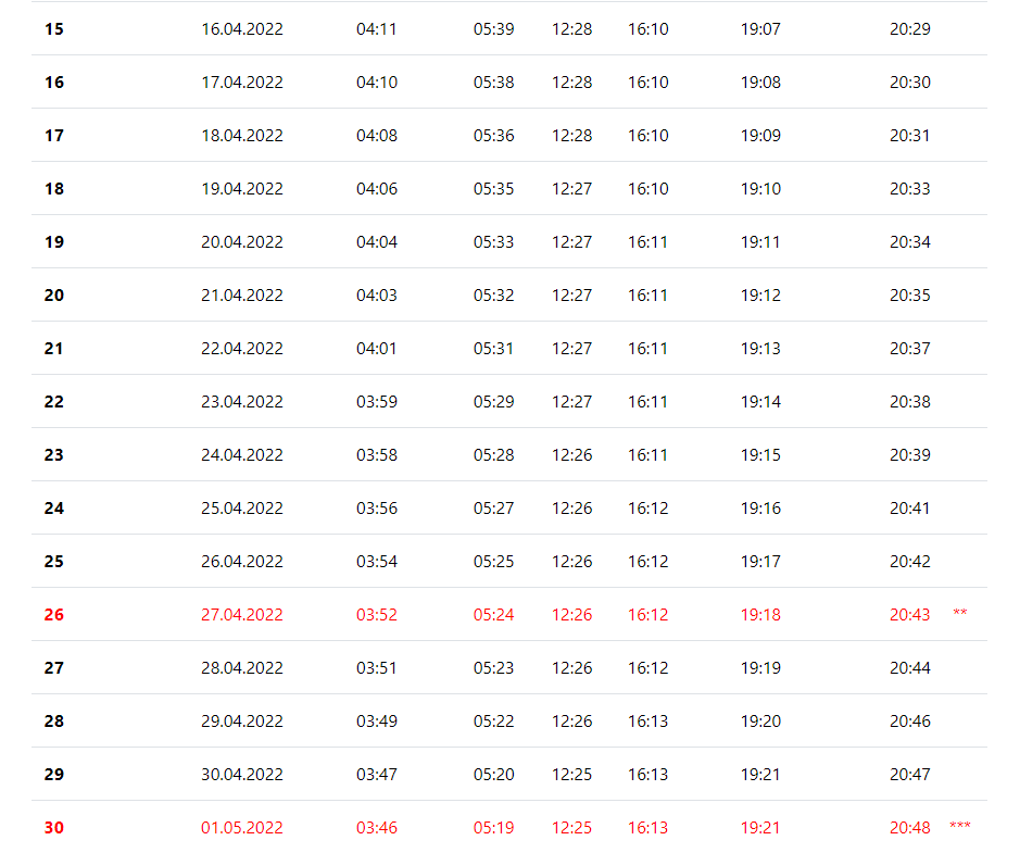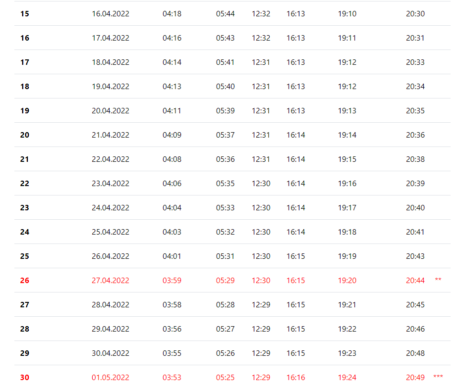 | Öğle | 13:10 | ||