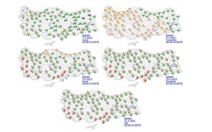 Meteoroloji; Adıyaman, Antalya, Bingöl, Bitlis, Diyarbakır, Elazığ, Erzincan, Erzurum, Kayseri, Malatya, K.Maraş, Muş, Nevşehir, Niğde, Sivas, Tunceli, Aksaray ve Osmaniye illeri için sarı ve turuncu kodlu uyarıda bulundu.