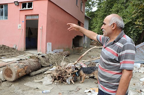 Selde tomruklarla evi delinen vatandaş ise, “Biz arabalarla tam gelmiş, arabaları bir yere koymaya gidecektik. Gitmeye fırsat olmadan hemen yukarıdan aşağıya geldi üstümüze. Araba da orada selle birlikte gitti. 2 araba birden ikisi üst üste. Caminin oradan aşağıya geldi alt katta olduğu gibi ne kadar eşya varsa hepsini dışarı çıkarttı. Bütün alt kattaki hepsi gitti. Evin üst tarafı açık. Tomruklar orayı kırdı. Duvarı patlatınca aşağıdan ne varsa gitti” ifadelerini kullandı.