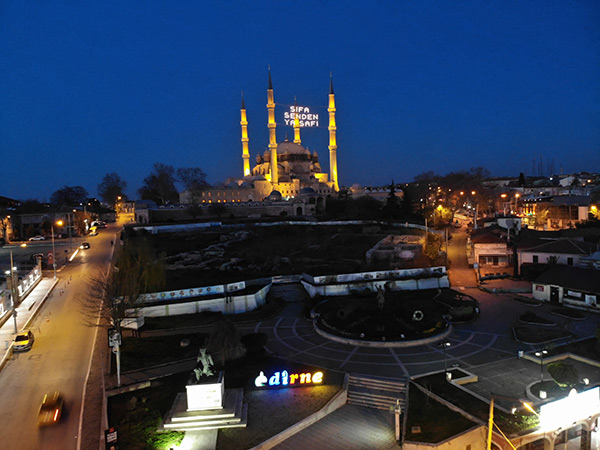 Diyanet İşleri Başkanlığı ve Vakıflar Genel Müdürlüğü tarafından bu yıl belirlenen tema kapsamında, yaklaşık 30 metre uzunluğundaki ‘Şifa senden ya şafi’ yazılı mahya, dünya mimarlık tarihinin başyapıtlarından Selimiye Camii’ne asıldı.