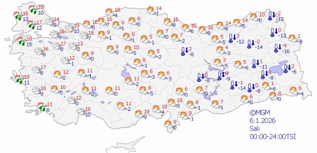 Batı illerde 15-19 derece, iç Anadolu 11-14 derece ve doğuda hafif yükselişle 0-5 derece sıcaklıklar bekleniyor.