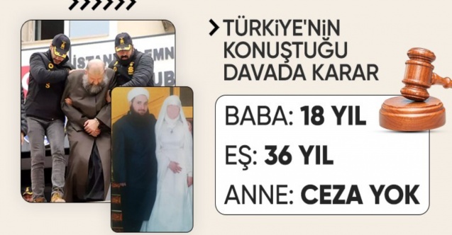 6 yaşında evlendirme skandalına ilişkin davada karar çıktı. Baba Yusuf Ziya Gümüşel 18 yıl 9 ay, Kadir İstekli 36 yıl hapis cezasına çarptırıldı