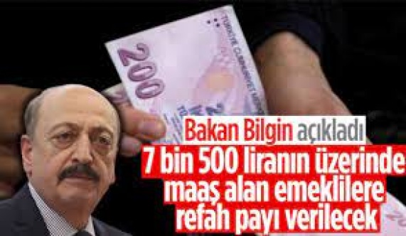 Çalışma ve Sosyal Güvenlik Bakanı Vedat Bilgin, 7 bin 500 liranın üzerinde maaş alan emeklilere refah payı verileceğini açıkladı.