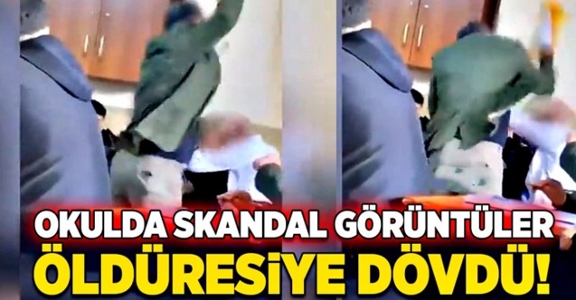 Öğrencisinin kafasını hedef alan öğretmen, dakikalarca bu eylemini sürdürdü.
