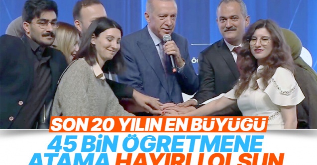 Türkiye tarihi anlara tanıklık etmeye devam ediyor. Milli Eğitim Bakanlığı tarafından, 103 branşta 45 bin öğretmenin ataması yapıldı. Tek seferde en yüksek sayıda yapılan 45 bin öğretmenin atamasıyla tarihi ana tanıklık eden Haliç Kongre Merkezi'nde tören düzenlendi. Cumhurbaşkanı Recep Tayyip Erdoğan, Haliç Kongre Merkezi'nde "45 bin Öğretmen Atama Programı'nda" konuştu. Erdoğan konuşmalarında, "Atamaların yüzde 65'ini biz yaptık. 45 bin öğretmenin büyük çoğunluğu deprem bölgesine atanacak." ifadelerini kullandı.