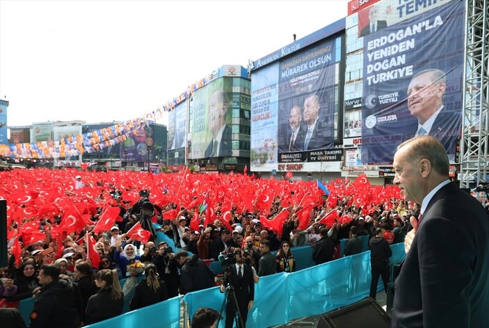 Cumhurbaşkanı Erdoğan, birçok tuzağı bozduklarını dile getirirken, "14 Mayıs'ta çok güçlü bir destek istiyorum. Bugünkü sıkıntıların üstesinden gelecek olan da biziz." diye konuştu.
